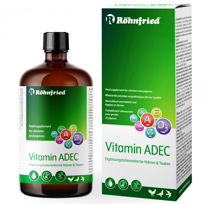 AD3EC are în plus față de tradiționala AD3E și vitamina C care are aplicații multiple în organismul porumbeilor.